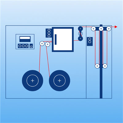 绕线机用于驱动交叉缠绕的胶卷,并通过拉力控制