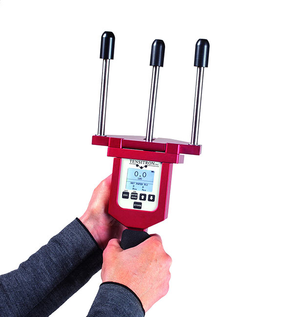 •松开张力计作动手柄,使张力计夹住校验条,测出张力值。